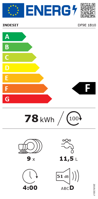 Indesit DF9E1B10 Brīvi Stāvoša Trauku Mazgājamā Mašīna