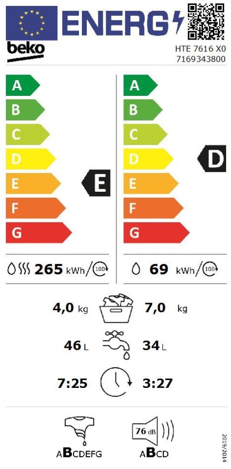 ikgadējais enerģijas patēriņš (mazgāšana + žāvēšana) 1088 KWh/gadā LV