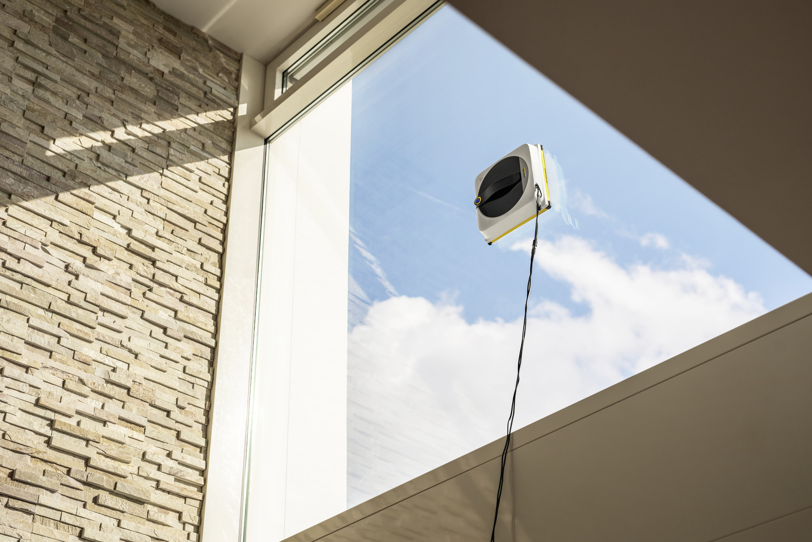 RCW 4 logu tīrīšanas robots aizstāj manuālo lielu un grūti sasniedzamu logu tīrīšanu. Pateicoties jaudīgai vakuuma tehnoloģijai, tas garantē drošu saķeri ar visām gludajām virsmām, tostarp spoguļiem un dušas kabīnēm. Pat bezrāmju stikla virsmas tiek tīrītas ātri un uzticami, pateicoties sistemātiskai navigācijai ar četriem sensoriem rāmju, objektu un malu noteikšanai. Lai panāktu vislabāko rezultātu, mikrošķiedras drāniņa tiek nepārtraukti un precīzi mitrināta ar tīrīšanas šķīdumu, izmantojot sešas izsmidzināšanas sprauslas. Tieša mitrināšana novērš pilienu veidošanos. Atkarībā no netīrumu pakāpes var izvēlēties četrus automātiskos tīrīšanas režīmus un vienu manuālo režīmu, kurus ērti var vadīt ar tālvadības pulti. LED signāli un balss paziņojumi sniedz precīzu informāciju par iekārtas stāvokli, piemēram, kad tīrīšanas līdzekļa tvertne ir tukša. Komplektācijā iekļautais logu tīrīšanas līdzeklis RM 503 uzticami noņem netīrumus, žūst, neatstājot svītras, un ļauj lietum ātrāk notecēt, nodrošinot ilgstošu tīrību. Un pat strāvas padeves pārtraukuma gadījumā RCW 4 paliek piestiprināts pie stikla, pateicoties rezerves baterijai un drošības kabelim.