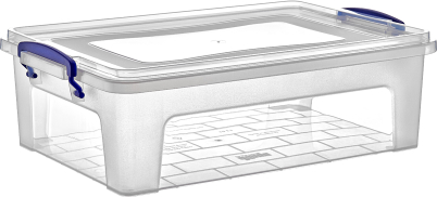 | Uzglabāšanas kaste, caurspīdīga, 10L. Izmēri: 41 x 28 x 12 cm. Vāka slēdzene ar diviem rokturiem. Neslīdoši sakraujami. Pārtikai nekaitīgs. Viegli satverams un pārnēsājams. |