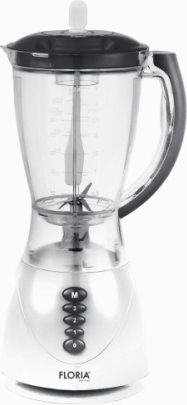 | Blenderis FLORIA ZLN 3081 Balts, jauda 300W, ietilpība 1.5L, 3 ātrumi, impulsa funkcija, plastmasas krūze. Liela tilpuma blenderis ar 1.5L krūzi, 3 ātrumiem, impulsa funkciju, nerūsējošā tērauda asmeņiem un aizsardzību pret pārkaršanu. Jauda – 300W, barošanas spriegums 220–240V. |
