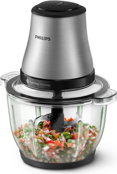 PowerChop tehnoloģija izciliem smalcināšanas rezultātiem Viegli sasmalciniet mīkstas un cietas sastāvdaļas, pateicoties PowerChop tehnoloģijai, kas optimāli apvieno asmeņus, griešanas leņķi un iekšējo bļodu. Pagatavojiet iecienītākos mērcējumus 2 l stikla bļodā Vai jums patīk avokado? Vai esat liels pesto cienītājs? Jūs varat pagatavot jebko dāsnajā 2 litru stikla traukā. Divi ātrumi, dubulta precizitāte! Jūs varat viegli pagatavot sastāvdaļas, pateicoties diviem dažādiem ātrumiem. Izmantojiet pirmo ātruma iestatījumu dažas sekundes, lai iegūtu rupjākus rezultātus, vai izbaudiet vienmērīgus rezultātus ar otro ātruma iestatījumu. Vairs nav bīdāmā smalcinātāja. Sasmalcināšana tikai ar vienu roku, pateicoties mūsu smalcinātāja gumijas dibena stabilitātei. Viegli tīrāms Neuztraucieties par tīrīšanu. Gan bļoda, gan asmeņi ir mazgājami trauku mazgājamā mašīnā. Viens rīks, bezgalīgas iespējas! Šis smalcinātājs var viegli apstrādāt visu veidu sastāvdaļas, sākot no mērcēm līdz salātiem. Jūs pat varat to izmantot, lai sasmalcinātu gaļu un pagatavotu riekstu sviestu vai mērces visai ģimenei. Ātra sasmalcināšana, pateicoties 4 nerūsējošā tērauda asmeņiem Lāzergrieztie precīzie naži ir īpaši izstrādāti, lai sagrieztu jebko, lai jūs varētu sasmalcināt sastāvdaļas pēc iespējas ātrāk. Pagatavojiet savu riekstu sviestu. Jūs varat viegli pagatavot savus riekstu sviestus mājās un izpētīt jaunas un veselīgas receptes. Jūs pat varat pagatavot savu šokolādes pastu bērniem.