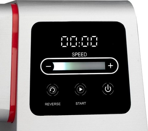 Daudzpusība: 6 vienā ierīce maltās gaļas, desiņu, burgeru kotlešu, kebabu, 4 veidu smilšu cepumu pagatavošanai, kā arī garšaugu, dārzeņu un zivju smalcināšanai. Maināma 6 pakāpju ātruma kontrole optimāliem rezultātiem. Jaudīgs pilnībā no vara izgatavots līdzstrāvas motors: Izturīgs līdzstrāvas motors ātrai jaudas pārvadei, energoefektivitātei, izturībai un uzticamai veiktspējai ikdienas lietošanā. Augsta veiktspēja un efektivitāte: Jaudīgs, energoefektīvs un izturīgs pilnībā no vara izgatavots līdzstrāvas motors ar 600 W nominālo jaudu (maks. 2500 W) - apstrādā līdz 168 kg gaļas vienā stundā (2,8 kg minūtē). Liels griezes moments uzlabo malšanas veiktspēju ar cietākām sastāvdaļām, vienlaikus nodrošinot labāku zobratu aizsardzību. Izturīgs dizains: Augstas kvalitātes, matēts, lieta metāla korpuss, speciāli slīpēts 4 asmeņu nerūsējošā tērauda krustveida asmens, metāla stiprinājums, planētu zobrati un dubultie zobrati nodrošina šī kompaktā profesionālā instrumenta izturību un stabilitāti. Intuitīva darbība: Sensor Touch LED displejs, 6 ātrumu iestatījumi, atpakaļgaita, start/stop, skaidri parāda visas darbības funkcijas. Maksimāla uzticamība: Divkāršie un pilnībā metāla zobrati nodrošina vienmērīgu darbību un ilgu kalpošanas laiku. Ātrums: Liela izeja (izmērs Nr. 10) un mainīga ātruma kontrole optimāliem rezultātiem. Piederumi: 3 perforēti diski: 3 mm, 5 mm un 8 mm, desu pildījuma un kebaba uzgalis, kā arī cepumu uzgalis ar 4 motīviem, hamburgeru prese (2 izmēri, kā arī pildītām kotletēm) un 2 daļu piederumu uzglabāšanas komplekts.