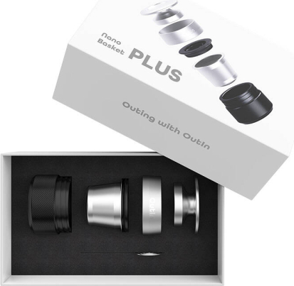 Outin Basket Plus double espresso adapterEnhance the capabilities of your Outin Nano espresso machine. The Outin Basket Plus kit consists of a tamper, dispenser, ground coffee filter, flask and coffee distribution tool. It allows you to prepare double servings of espresso with even more intense flavor. The increased capacity for ground coffee (16-18 g) allows you to brew coffee with a richer flavor and aroma profile. The products are made of high-quality food-grade stainless steel.