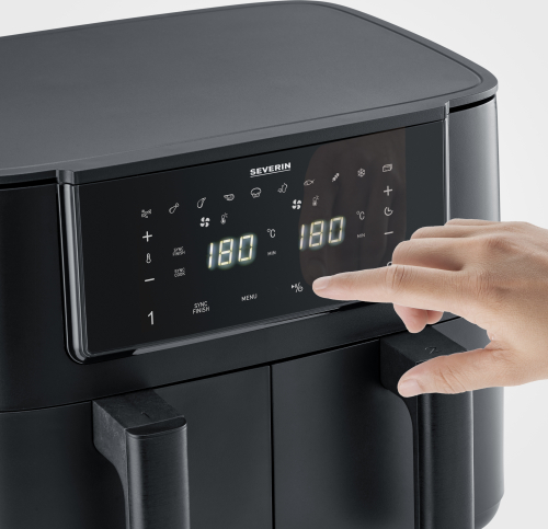 | Dubultais karstā gaisa fritieris Ātrai, daudzpusīgu un veselīgu ēdienu pagatavošanai, nepievienojot eļļu vai taukus – ātri, veselīgi un energoefektīvi, pateicoties 360° karstā gaisa tehnoloģijai. Divi ietilpīgi 4 litru fritēšanas grozi dažādu ēdienu vienlaicīgai pagatavošanai. Sync Cook: Divkāršojiet savas iespējas! Sync Cook funkcija ļauj pārsūtīt iestatījumus no viena groza uz otru, ļaujot vienlaikus gatavot ēdienu abos grozos. Ideāls risinājums ģimenes maltītēm vai neregulāriem viesiem – ātrāk, vienkāršāk, labāk! Sync Finish: Sync Finish funkcija nodrošina, ka abi grozi pabeidz gatavošanu gandrīz vienlaicīgi, tikai ar 30 sekunžu intervālu. Šis laiks ir pietiekams, lai izņemtu ēdienu no pirmā groza un pasniegtu visu svaigu un karstu, lai nodrošinātu maksimālu svaigumu un perfektu baudījumu. Intuitīva skārienvadība ar 10 automātiskām programmām izciliem rezultātiem. Ierīci var izmantot dažādos veidos, piemēram, frī kartupeļu, vistas, steika, dārzeņu, zivju, saldētu produktu, garneļu, tofu, iesmu un kūku pagatavošanai. Ērta siltuma uzturēšanas funkcija uztur ēdienu siltu tik ilgi, cik nepieciešams. Tilpums: 8 l Izmēri: 39,5 x 37,6 x 29,8 cm Jauda: 2600 W |