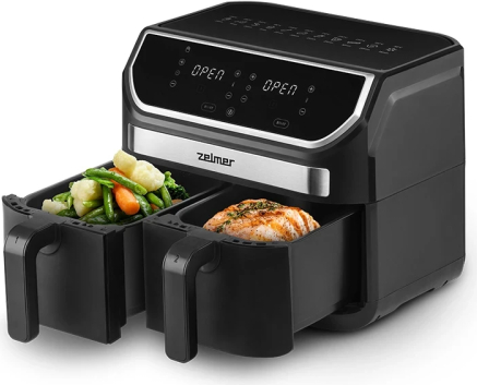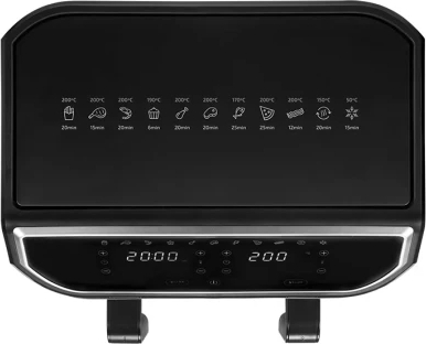 | 1700 W beztauku fritieri ar 9 litru tilpumu un 360º ātras gaisa cirkulācijas tehnoloģiju. Aprīkots ar digitālu LCD paneli un dubultu grozu. Veselīgs ēdiens ar minimālu tauku daudzumu īsā laikā, pateicoties 11 automātiskām programmām. |