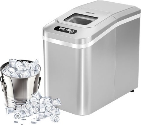 Elektroniskais vadības panelis ar vadības gaismām un akustisko signālu: ieslēgts / izslēgts. Ražo: 8-10 kg ledus 24 stundu laikā; izgatavo 6 ledus gabaliņus ik pēc 6-13 minūtēm. 1,0 l ūdens tvertnes tilpums. 0,6 l ledus groza tilpums. Caurspīdīgs monitora logs. Klusa darbība. Ledus lāpstiņa. Izmēri (platums x dziļums x augstums): 202 x 357 x 320 mm. Neto svars: 8,0 kg. Spriegums: 220-240V 50Hz. Nominālā jauda: 150 W |