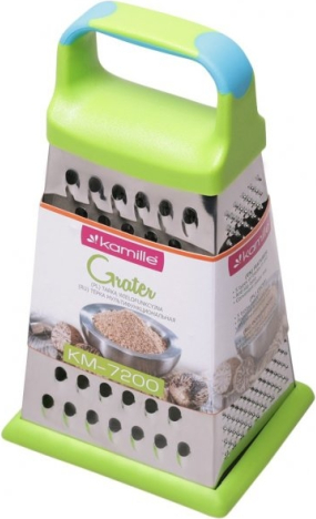| Četrpusīga rīve no nerūsējošā tērauda, 7200, Kamille. Rīve izgatavota no nerūsējošā tērauda ar plastmasas rokturi un silikona pamatni. Tai ir 5 asmeņu tipi. Augstums: 22.5cm. Pamatne: 12×10cm. Ērta un viegli lietojama. Praktiska un noderīga katrā mājā. Ieteicama roku mazgāšana. |
