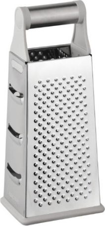 Kinghoff 4-pušu rīve, 24.8 × 10.8 × 8.5 cm, KH 1989. Izmēri: 24.8 × 10.8 × 8.5 cm. Izgatavota no augstas kvalitātes nerūsējošā tērauda, izturīga pret rūsu un bojājumiem. 4 dažādas rīves puses – rupjai rīvēšanai, smalkai rīvēšanai, griešanai un dārzeņu strēmelēm. Ergonomisks rokturis ar tērauda elementu stabilam satvērienam. Silikona neslīdoša pamatne nodrošina drošu lietošanu bez slīdēšanas. Gluda virsma ļauj viegli tīrīt un uzturēt higiēnu. |