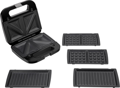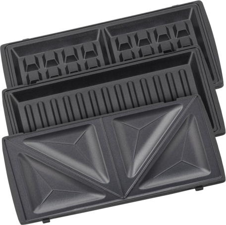 3 noņemamas un maināmas plāksnes trīsstūrveida sviestmaizēm, vafelēm un grilētiem ēdieniem Perfekta aizblīvēšana Ātra un vienmērīga cepšana Plāksnes ar PFOA nesaturošu nepiedegošu pārklājumu 2 neatkarīgas indikatora lampiņas: ieslēgts/gatavs Vertikāla uzglabāšana Bloķēšanas skava uzglabāšanai Integrēts vada tinējs Neslīdošas kājiņas Spriegums 230 V Jauda 750 W