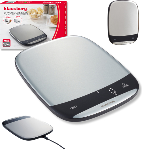 | Virtuves svari, sudraba krāsā, 10 kg, KLAUSBERG, KB 7936. Maksimālā slodze 10 kg / 22 lb. Mērījumu precizitāte 1 g / 0,1 oz. Skaidrs LED displejs. Darbojas ar akumulatoru, uzlāde ar USB-C. TARE / ZERO funkcija. Ūdens un piena mērīšana (ml / fl'oz). Mērvienības: g / ml / fl'oz / lb:oz. Skārienvadība. Svēršanas virsma no INOX nerūsējošā tērauda. Automātiska izslēgšanās. Var piekārt pie sienas. Maksimālā slodze: 10 kg. Precizitāte: 1 g. Mērvienības: g, lb:oz, ml, fl'oz. Displejs: LED. Platformas materiāls: INOX nerūsējošais tērauds. Barošana: akumulators, USB-C. Funkcijas: TARE, šķidrumu mērīšana, automātiska izslēgšanās. Izmēri: apm. 21 × 16,5 × 1,8 cm. Krāsa: sudraba ar melnu paneli. Pielietojums: gatavošana, diēta, cepšana, gastronomija. |