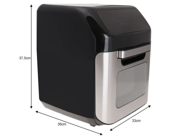 Temperatūras diapazons: 80-200°C ar manuāliem un automātiskiem laika iestatījumiem. Digitālais taimeris gatavošanai līdz 90 minūtēm. Tilpums 12 litri. Aizsardzība pret pārkaršanu. Automātiska izslēgšana. Gaisa cirkulācijas sistēma ļauj ātrāk cept/izcept ēdienu un ietaupīt enerģiju. Pilnīga drošība un stabilitāte. Žāvēšanas funkcija. Viegli tīrāmas detaļas un piederumi. Jauda 1800 W. Izmēri: 33 x 36 x 37,5cm. |