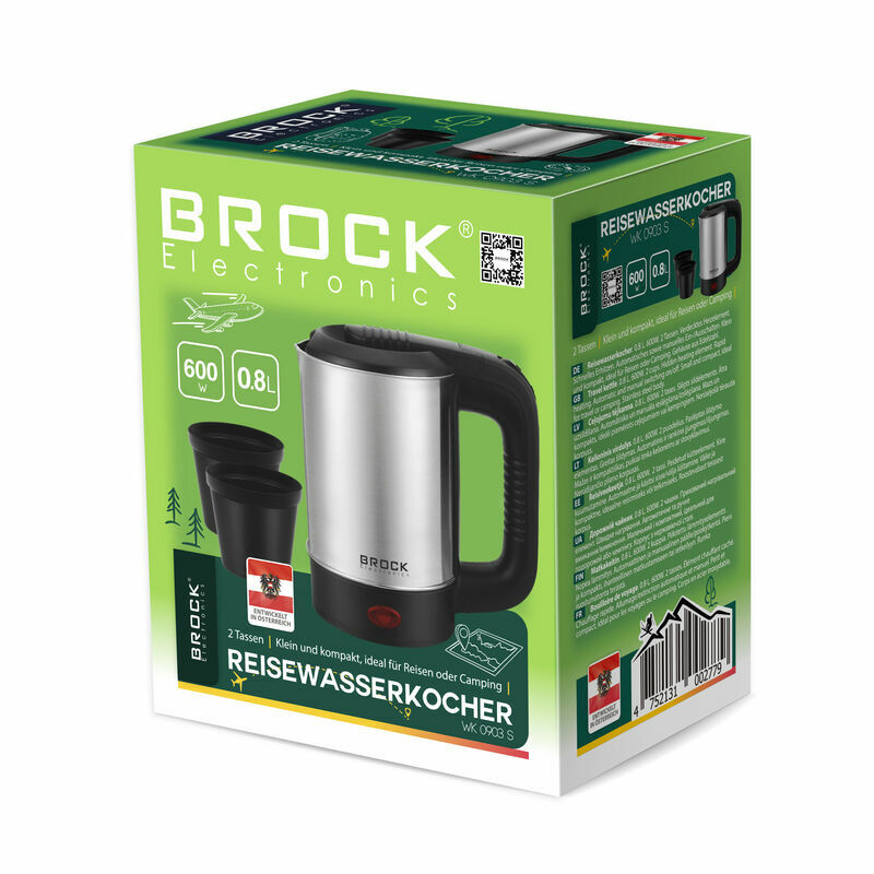 BROCK WK 0903 S Elektriskā tējkanna, nerūsējošais tērauds 0.5 500W + 2 krūzītes