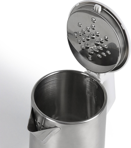| Nerūsējošā tērauda korpuss Tilpums: 2L Maksimālais vārīšanas ātrums Divkārša drošības sistēma Plata lūpa vieglai tīrīšanai Nerūsējošā tērauda sildīšanas plāksne Vāks ar eņģēm Automātiska izslēgšanās Aizsardzība pret pārkaršanu Ūdens līmeņa indikators Izgaismots strāvas slēdzis 360° grozāma pamatne Kabeļa uzglabāšana Spriegums: 230 V Jauda: 1500 W |