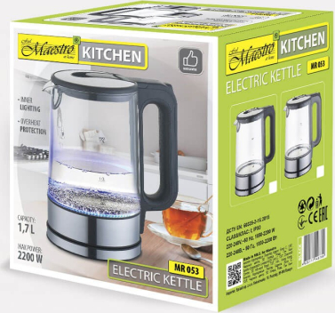 Maestro MR053 electric kettle 1.7 L 2200 W Black, Transparent