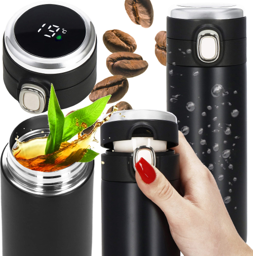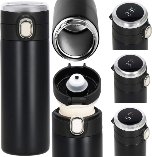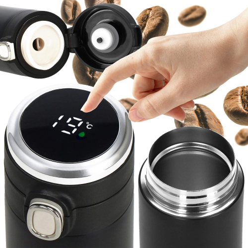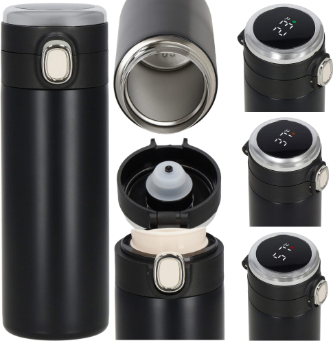 Elektroniskais temperatūras displejs vāciņa augšpusē, grādos pēc Celsija, pilītes krāsa displejā norāda dzēriena siltuma pakāpi: zaļa, oranža, sarkana