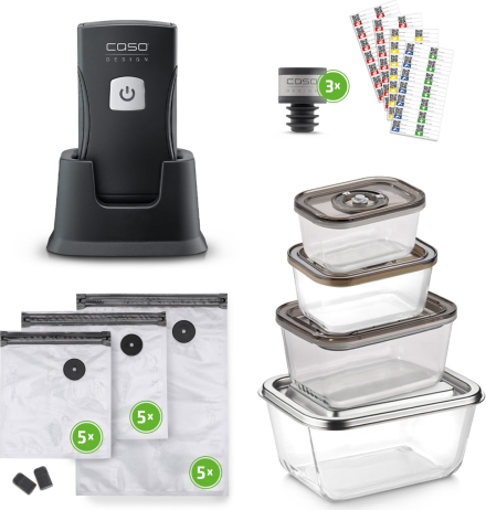 Caso Professional Hand Vacuum Sealer with Accessories Vacu OneTouch Pro Set Power 20 W Black