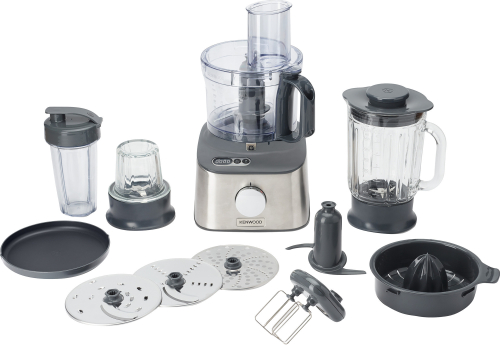 Kenwood MultiPro Compact+ food processor, silver, 800 watts, integrated scale, blender attachment and Blend-Xtract 2GO