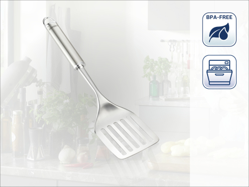 Elegants dizains apvienojumā ar augstas kvalitātes nerūsējošo tēraudu: Leifheit Sterling sērijas virtuves piederumi ar matētiem un spīdīgiem elementiem, ir lieliski piemēroti ēdiena servēšanai un pasniegšanai. Nerūsējošais tērauds sniedz patīkamu stabilitāti, kā arī piederumiem ir integrēta cilpiņa pakarināšanai kas lieliski saderēs kopā ar Leifheit virtuves piederumu turētāju.