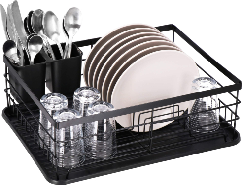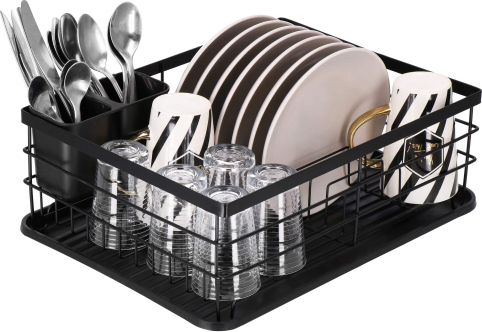 | Melna krāsa Materiāls: tērauds, plastmasa Tips: trauku žāvētājs Izmēri: Kopējais garums: 42 cm Kopējais platums: 31,5 cm Kopējais augstums: 14,5 cm Žāvētāja kājas platums: 2,5 cm Attālums starp statīva virsmu un žāvētāja apakšējiem stieņiem: 3 cm Melns statīvs: 42 x 31,5 x 2 cm (ārējais garums x ārējais platums x augstums) Melns statīvs: 40 x 29,5 x 1,5 cm (iekšējais garums x iekšējais platums x augstums) Žāvētājs: 40 x 30 x 14 cm Nodaliņi žāvētājā: 8,5 x 2,5 ; 11,5 x 2,5; 20 x 3 cm Pamatnes malas biezums: 5,5 mm Žāvētāja loka biezums: 2,5 mm Žāvētāja konstrukcijas cauruļu biezums: 2 / 2,5 / 3,5 mm Konteiners ar 2 nodalījumiem: 15 x 8 x 9,5 cm (G x P x A) 2 nodalījumi: 7,5 x 7 cm (G x W) Papildus informācija: Tvertnes apakšdaļa ar nodalījumiem ir perforēta Cieta ūdens paplāte Augstas kvalitātes materiāli un darbs Elegants dizains Liela ietilpība Viegli un ērti tīrāms Ietver noņemamu plastmasas paplāti un trauku plauktu Nav nepieciešama montāža |