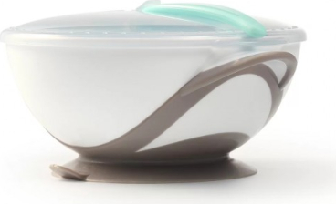 | Bļoda ar vāku ļoti noderēs pastaigu vai ceļojumu laikā. Mīksts vāks ir aprīkots ar iedobi karotes uzglabāšanai- lai tā nebūtu netīra vai pazaudēta . Gumijas piesūceknis snoturēs bļodu uz galda. Bļoda izgatavota no drošiem materiāliem, kas paredzēti saskarei ar pārtiku, produkts ir pilnīgi bez bisfenola A. To var lietot mikroviļņu krāsnī, kā arī trauku mazgājamajā mašīnā.