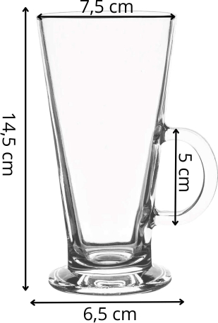 6 glāžu komplekts ir ideāls risinājums latte, karstās šokolādes vai eleganti pasniegtu desertu cienītājiem. Glāzes ir izgatavotas no izturīga, caurspīdīga stikla, kas lieliski parāda jūsu dzēriena vai deserta slāņus. To modernais dizains ar ērtu rokturi padara brilles ne tikai stilīgas, bet arī funkcionālas. Lieliski piemērotas ikdienas lietošanai un īpašiem gadījumiem, tie būs būtisks jebkuras virtuves elements.