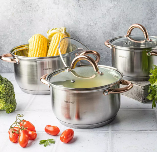 KINGHoff rozā zelta krāsas katlu komplekts, 6 daļas, Ø18, Ø20, Ø24, KH 1762