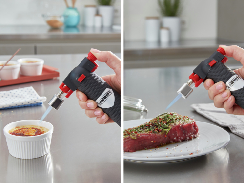 Leifheit dedzinātājs īpaši paredzēts cukura karamelizēšanai vai gaļasēdieniem, kas pārsteidz ar savu ērtumu un drošu aizdedzes mehānismu. Pildīts ar butāna gāzi (vieglāks šķidrums).