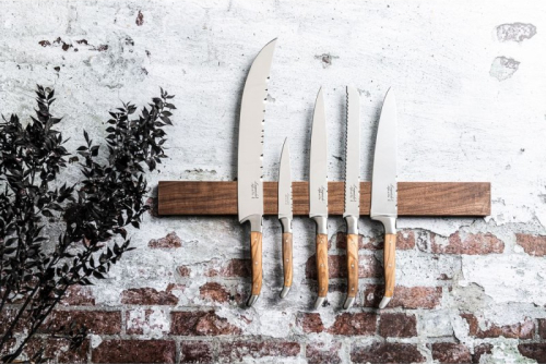 | Magnētiskais nažu statīvs no valrieksta, paredzēts 8 līdz 11 nažu pakāršanai. Šis nažu statīvs ir paredzēts montāžai pie sienas. Tā garums ir 50 cm un augstums - 5 cm. |