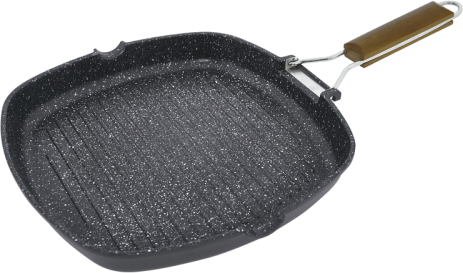 | Pilna indukcijas apakšdaļa Pfluon "Stonite" nesaturošs pārklājums bez PFOA. Die-cast alumīnija korpuss. Lieliska siltuma veiktspēja. Viļņota virsma beztauku cepšanai. Koka saliekams rokturis. Divi pārliešanas snīpiši Piemērota visām plītīm, ieskaitot indukcijas. 28 x 28 cm. |