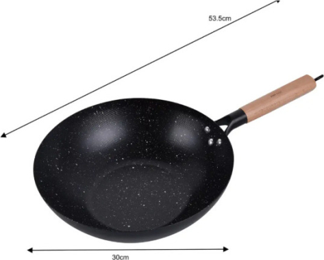 WOK panna 30 cm, oglekļa tērauds, marmora nepiedegošais pārklājums, koka rokturis, KINGHoff, KH 1983
