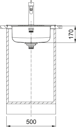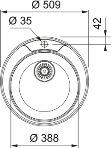 Franke ROL 610-39 Ø509 mm, nerūsējošā tērauda (auduma struktūra) iegriežama izlietne ar manuālo 3½'' ventili, ir caurums maisītājam - gab.