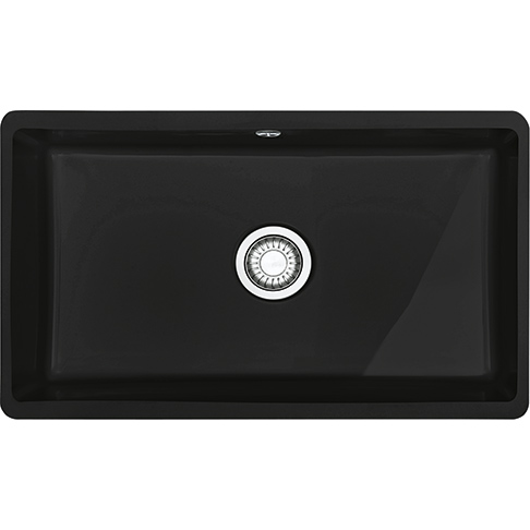 FRANKE virtuves izlietne, taisnstūra formas, izgatavota no keramikas, krāsa melna, paredzēta iebūvēšanai. Izmēri: garums 74,5 cm, platums 45,4 cm, dziļums 19 cm. Caurumu diametrs 3 1/2", aprīkota ar pretpārplūdes sistēmu. |