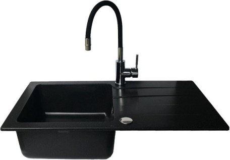 Maidsinks BALI sink (62x44) 1B1D black + Lungo mixer tap