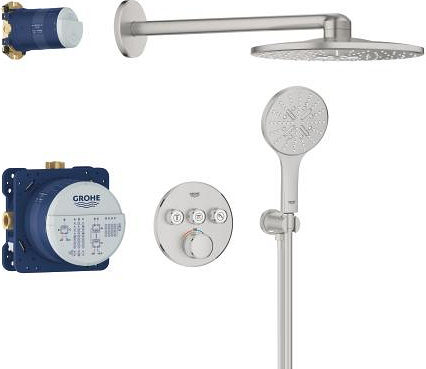 Grohe iebūvējama dušas sistēma ar termostatu SmartControl Rainshower SmartActive 310, supersteel