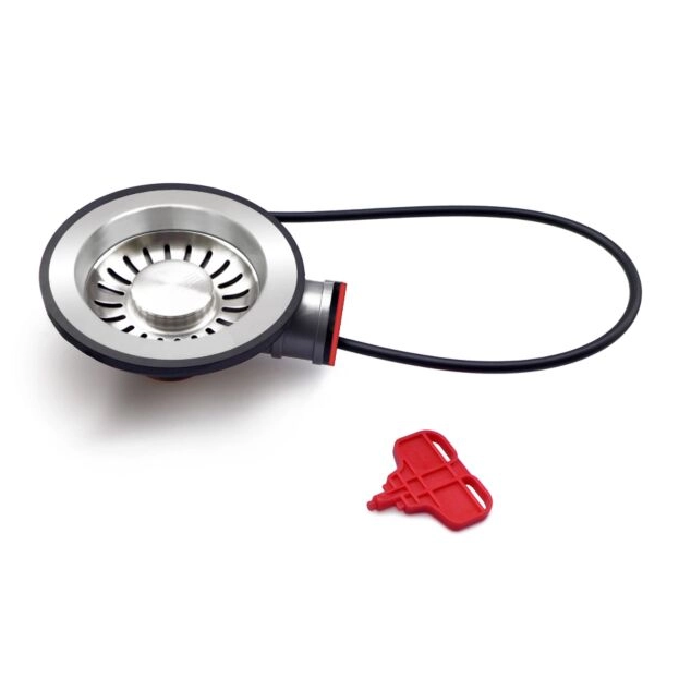Keramiskās izlietnes ventiļa komplekts ar Pop-Up regulējamu sietiņgrozu, pārplūdes savienojuma izvads un regulēšanas kabeli 500mm |