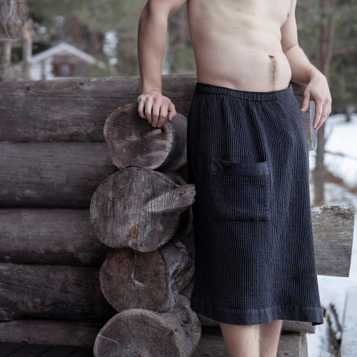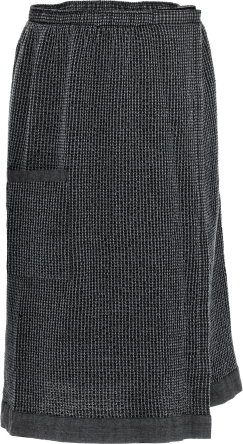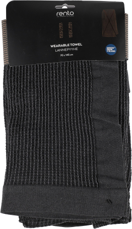 Dvielis - svārki RENTO GREY 70x145cm. Vidukļa dvielis ir ērts un viegls apģērbs. Plašā šambra apmale piešķir mājīgu, bet elegantu apdares pieskārienu. Produktam ir velcro aizdare. Produkts ir izgatavots no pārstrādātas kokvilnas, piešķirot audumam dabisku maigumu un dzīvīgu tekstūru. | ||||||||