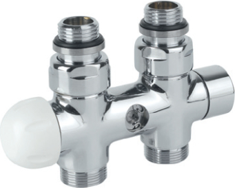 Carlo Poletti radiatora dubultbloks Twinvalve Thermo 1/2` x 24-19, taisns, bez termogalvas, balts (50mm)