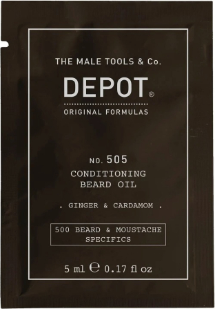 Depot, 500 Beard & Mustache Specifics No. 505, Beard Oil, Ginger & Cardamom, For Shine & Softness, 5 ml