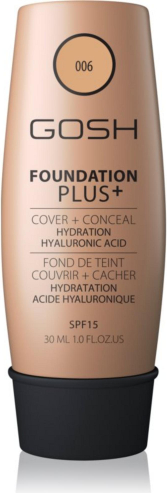 Gosh, Foundation Plus+, Cover & Conceal, Liquid Foundation, 006, Honey, SPF 15, 30 ml