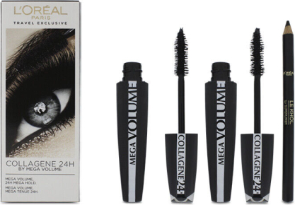 Set L'Oreal Paris: Mega Volume Collagene 24h Extra, Mascara, Black, 2 pcs, 9 ml + Contour Khol, Kohl Eyeliner, Black, 1.2 g