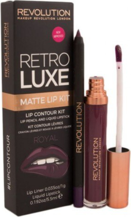Set Makeup Revolution: Retro Luxe, Matte, Liquid Lipstick, Royal, 5.5 ml + Retro Luxe, Lip Liner, Royal, 1 g