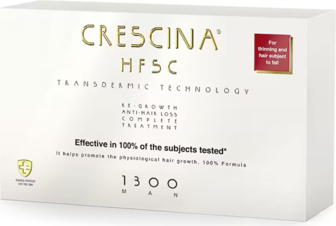 Labo, Crescina, Transdermic HFSC 1300, For Growth Stimulation, Ampoules Treatment Serum, For Scalp, For Men, 10 +10 pcs, 3.5 ml