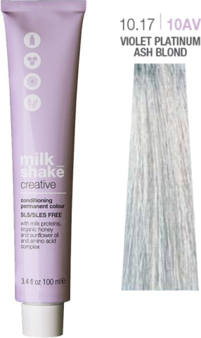 Milk Shake, Creative, SLS/SLES-Free, Permanent Hair Dye, 10.1710AV Violet Platinum Ash Blond, 100 ml