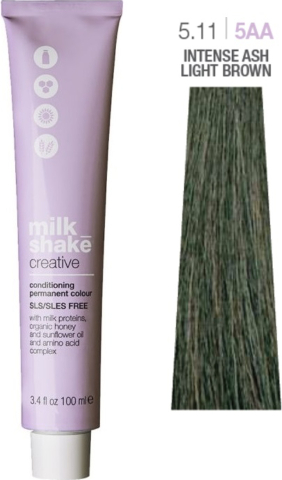 Milk Shake, Creative, SLS/SLES-Free, Permanent Hair Dye, 5.115AA Light Brown Intense Ash, 100 ml