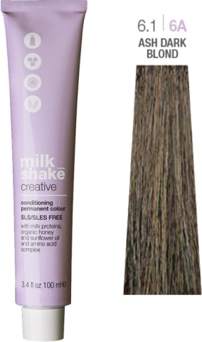 Milk Shake, Creative, SLS/SLES-Free, Permanent Hair Dye, 6.16A Ash Dark Blond, 100 ml