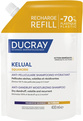 Ducray, Kelual Squanorm, Hair Treatment Shampoo, Anti-Dandruff, For Scalp With Dry Dandruff, Refill, 400 ml