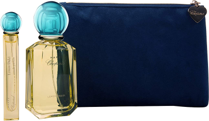 Happy Lemon Dulci Set Chopard: Happy Lemon Dulci Eau De Parfum For Women 100ml + Textile Makeup Bag Blue + Happy Lemon Dulci Eau De Parfum For Women 10ml