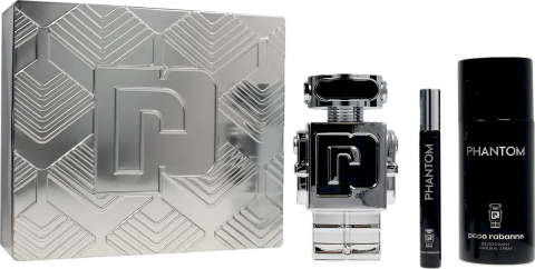 Set Paco Rabanne: Phantom, Eau De Toilette, For Men, 100 ml + Phantom, Eau De Toilette, For Men, 10 ml + Phantom, Deodorant Spray, For Women, 150 ml