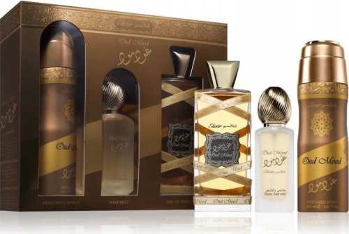 SET LATTAFA Oud Mood Elixir EDP spray 100ml + HAIR MIST 50ml + DEO spray 200ml